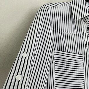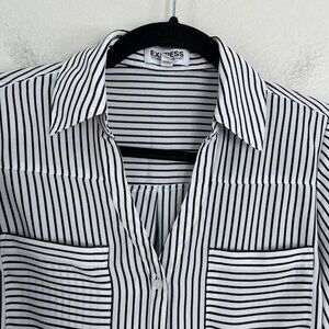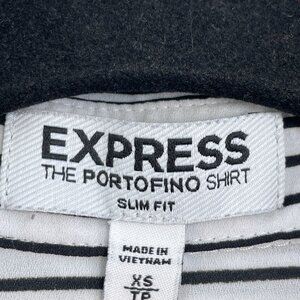 Express Portofino Shirt Womens XS Slim Fit Black White Striped Button Up Blouse