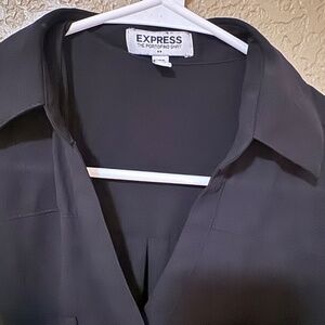Express Portofino Shirt, Size XS, Black, Polyester, collared neckline, long sleeve but can buttoned for casual look. Great condition, smoke free home