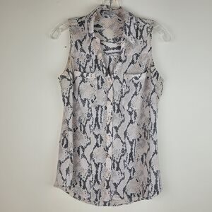 Express Portofino snakeskin ivory pale pink sleeveless collar button up shirt SP