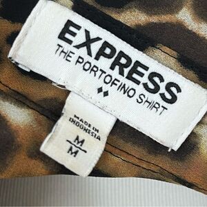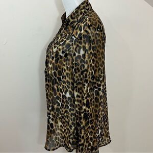Express Portofino Leopard Print Semi Sheer Button Front Long Sleeve Blouse M