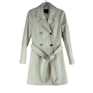 Express Premium Wool Blend Belted Double Breasted Coat Cream White Size XS