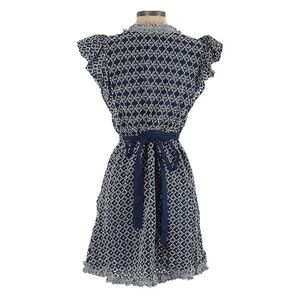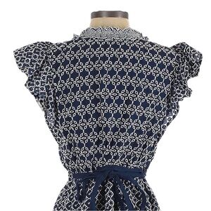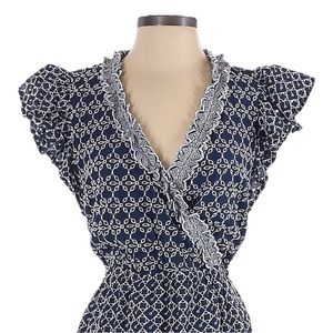 Express Printed Lace Trim Eyelet Navy Blue Belted Faux Wrap Dress Size S