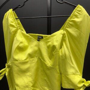 Women's Express puff sleeve corset tie sleeve smocked cropped top. Excellent condition. Size S. Pit to pit: 15". Total length: 9.25". Sleeve length: 8.5".