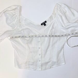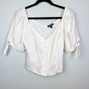 Express Puff Tie Sleeve Button Front Corset Crop Top White Cream Linen Womens M