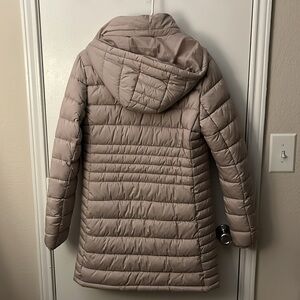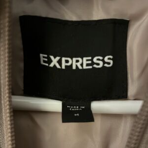 Tan winter puffer jacket from Express, size medium, long length, double zipper hood unzips too, no stains or flaws, in perfect condition, only wore once