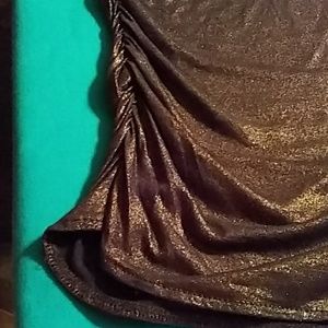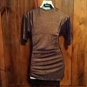 Brown shimmer fabric. Size small. Sleeve-Neckline to end 14 1/2". Front-30" long. Front seam across is 13 1/2" flat lay measurements.
