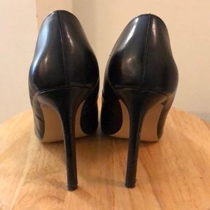 4 inch heel. Used good condition, few scuff marks could probably be cleaned up with some black shoe polish