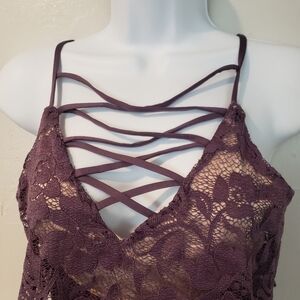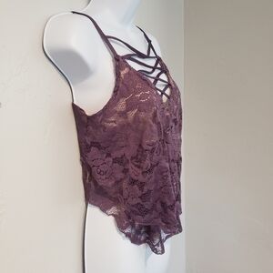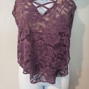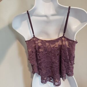 Express Purple Lace Tank Top Criss Cross Ruffle XS