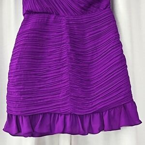 Express Purple One Puff Shoulder Rushed Ruffle Mini Dress. Sized L