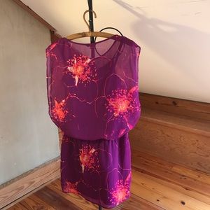 Express Purple Orange Sheer Tunic Dress, EUC, L