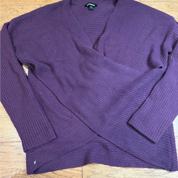 Express Purple Ribbed Wrap Sweater