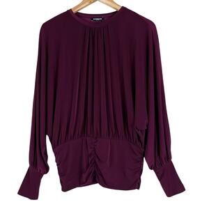 Express Purple Ruched Balloon Sleeve Blouse Womens S Elegant Minimalist