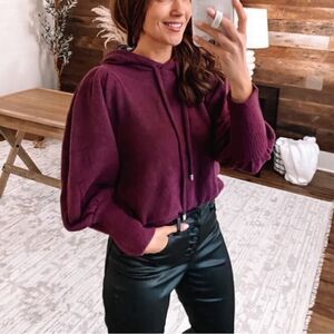 Express Purple Soft Balloon Puff Sleeve Pullover Hoodie
