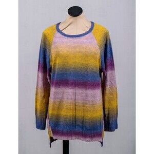 Express Purple Yellow Blue Ombre Stripe Fuzzy Long Tunic Sweater Dress Sz S