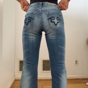 This jeans are so sick and cool! Perfect for anytime. There is a nice color tone on these jeans are they’re very comfortable and give this cool 70s vibes! Any lady that wears a size small, would fit these jeans. US size 6R. Made in China.