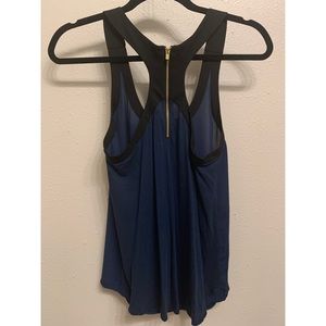 Express racerback tank. Navy blue sheer front and cotton back. Black straps and neck lining. Gold zipper detail on back. Worn only once. In great condition.