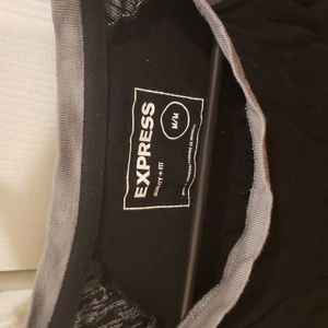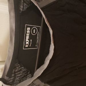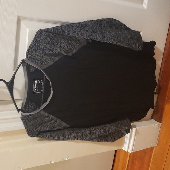 Express Raglan Tee. Black and Heather. Size M. Collar a little stretched. 3/4 sleeves. Wrinkled from storage. See pics for detail. Open to offers