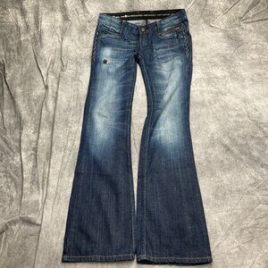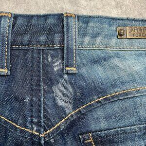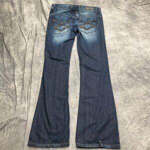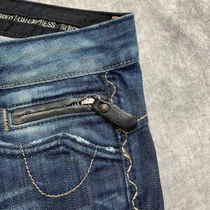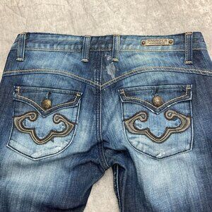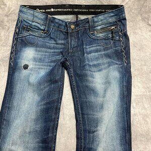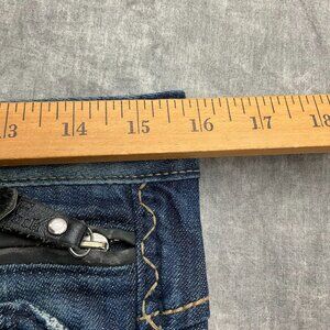 Express ReRock Jean Women 6 Blue Distressed Stitch Pocket Cotton Flap Stretch