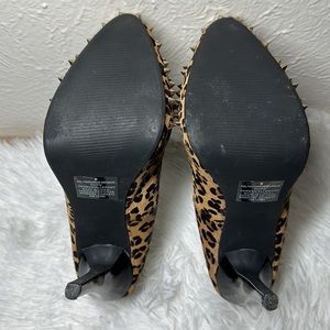 Express Real Hair Fur Leopard Print Spiked Platform Heel Pump Size 8.