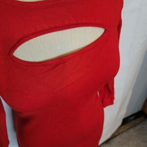 Express Red 3/4 Sleeves Bodycon Dress Chest Cut Out Size XS