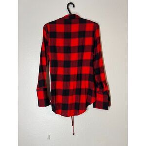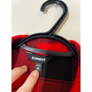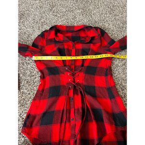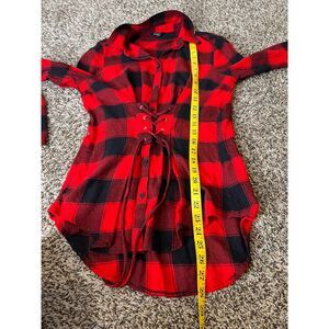 Express Red Black Buffalo Plaid Corset Style Flannel Top Womens XS Grunge Goth