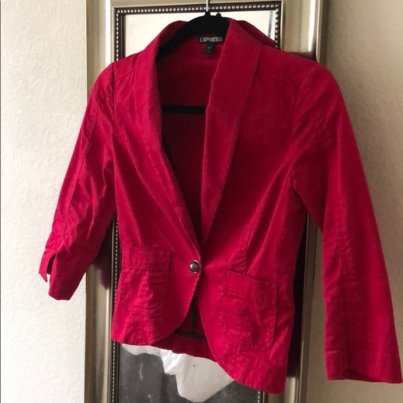 Stylish red blazer from Express. Features a single button closure. Perfect for formal or casual wear.