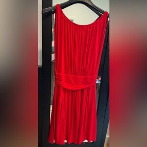 Beautiful red dress is easy to dress up or down! Extremely soft and comfortable.