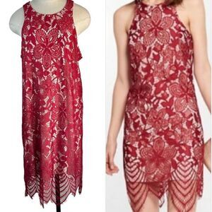 Item: Express Red Floral Lace Overlay Cocktail Dress Womens Large Sleeveless Glam