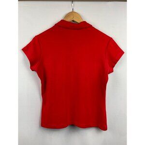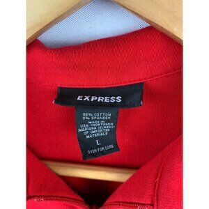 This Express Red Half Zip Polo Shirt is crafted from a soft cotton-spandex blend, offering both comfort and flexibility. Its vibrant red hue and classic polo style make it versatile for casual outings or smart-casual settings. With its flattering fit and easy-care fabric, it's a stylish addition to your wardrobe.
