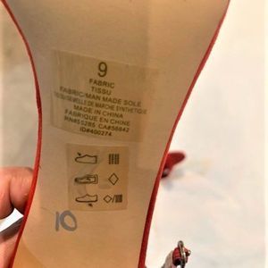 Elegant red sandals with high heels. Sleek ankle strap design. Perfect for evening wear.