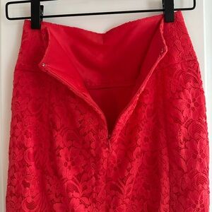 Express Red Lace High Waisted Midi Pencil Skirt NWT