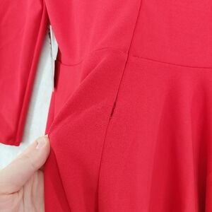 Express Red Long Sleeve Fit & Flare Casual Midi Dress 892