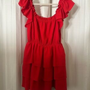 Express Red Smocked Tiered Ruffle Mini Dress - Size M