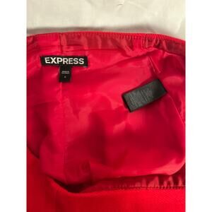 This Express Red Mini Skirt (Size 8) features a bold, vibrant red color with a flattering A-line silhouette. The standout detail is the two large front patch pockets, giving the skirt a stylish and modern look.