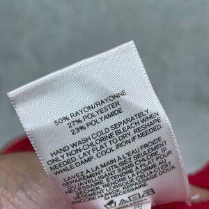 Soft rayon blend, mock neck, ribbed hem, long puff sleeves for added flair, women's medium, vibrant red color, Express brand tag intact.