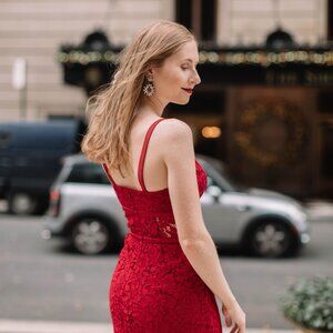 This dress features intricate lace detailing with contrast piping, creating a sophisticated yet eye-catching look. The sheath silhouette hugs your curves for a flattering fit, while the delicate lace overlay adds a touch of romance. Ideal for date nights, parties, or special occasions, pair it with heels and minimal accessories for a stunning ensemble.