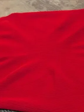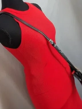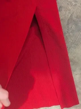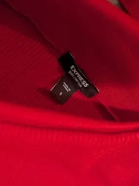 Stunning red Express Body Contour knit set featuring a fitted tank top and matching midi skirt.