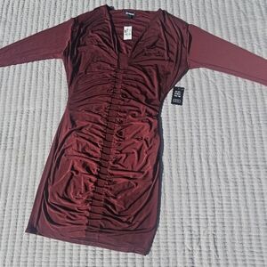 Express Red Ruched Bodycon Dress