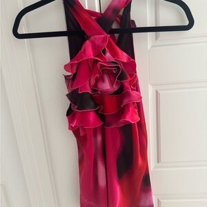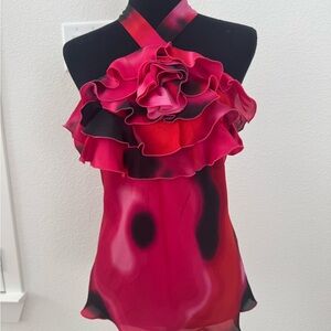 This stunning red halter top from Express features elegant ruffles for a chic look. Perfect for any occasion, it adds a touch of sophistication to your wardrobe.