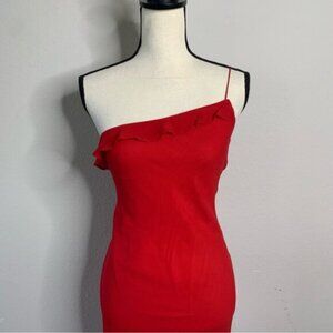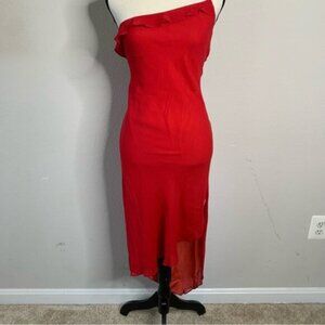 Express Red Silk One Shoulder Asymmetrical Cocktail Midi Dress