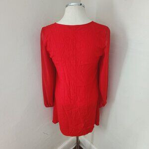 Express Red V Neck Tunic Blouse Sheer Sleeves women's Size‎ XS