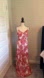 This elegant sundress from Express showcases a striking red and white pattern, perfect for wedding guest or cocktail events. The sleeveless design with spaghetti straps and a flowing maxi length offers a relaxed yet sophisticated silhouette. Ideal for warm weather, this dress combines comfort and style effortlessly.