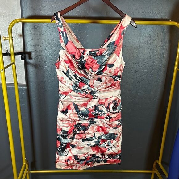 This eye-catching red mini dress from Express features a flattering ruched bodycon style that hugs your curves beautifully. The sweetheart neckline adds a touch of elegance, while the sleeveless design makes it perfect for a cocktail night out. Its sheath silhouette ensures a chic and sophisticated look for any evening occasion.