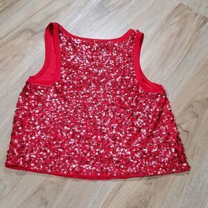 🔹️Express Red Sequin Cropped Sleeveless Top XSmall