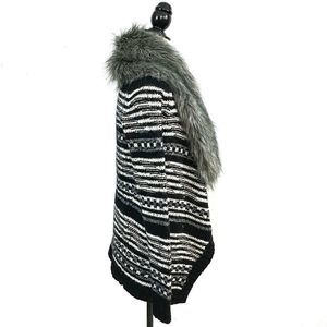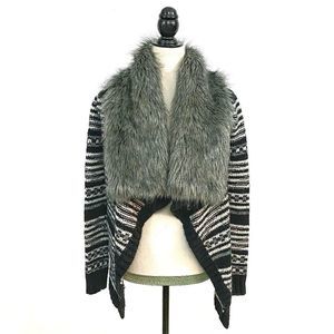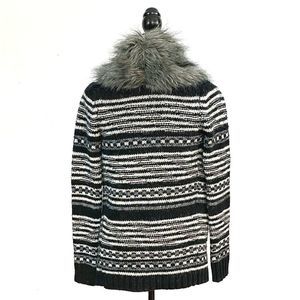 Express (Removable) Faux Fur Collar Sweater Coat - Geometric Stripe - S