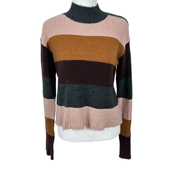 Express Retro Color Block Striped Long Sleeve Mock Turtleneck Sweater (S)