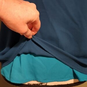 Super cute and unique flowy/dressy reversible blouse! One side is a darker blue and the other a teal. T-139