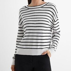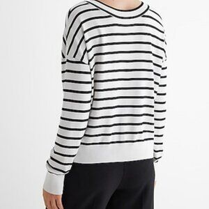 Details: classic striped sweater that can be worn two ways (V-neck or Crew neck), long sleeves with adjustable cuffs, relaxed/loose fit, machine washable