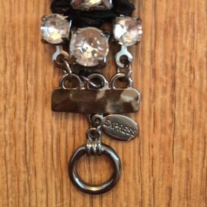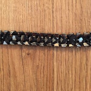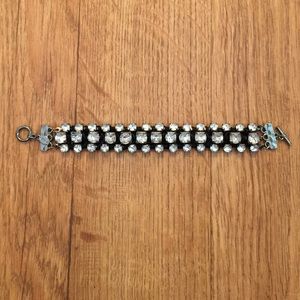 Adorable Express rhinestone bracelet! Great for stacking with other bracelets! Gun metal with woven satin and clear rhinestones. Great condition, worn once and not missing any stones. $15 separately or will bundle with 2 faux pearl bracelets for $20!