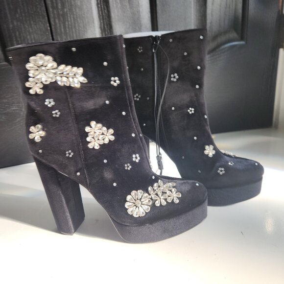 ✨ Express Rhinestone Embellished Platform Heeled Ankle Boots - Size 9 ✨